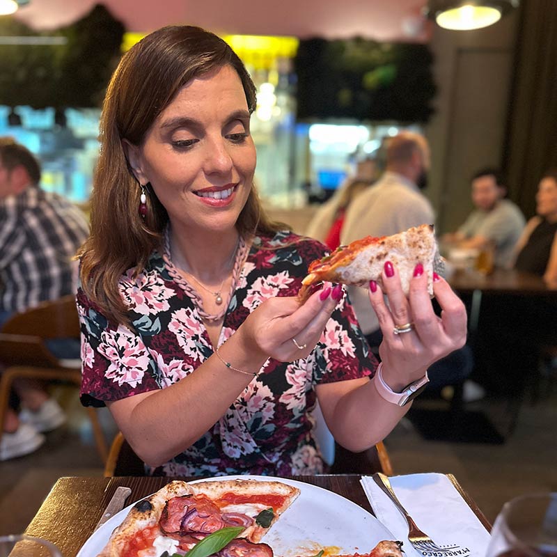 Si quieres compartir y probar más de una pizza con tu acompañante, puedes pedir con antelación que emplaten y dividan las pizzas para la mesa. mesa.