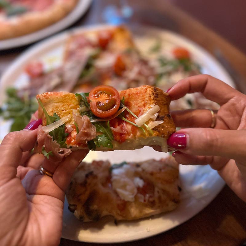 Todas las recetas son fieles a Nápoles, remontándose a los métodos más tradicionales y originales. métodos. Los platos son totalmente artesanales y caseros utilizando ingredientes frescos locales e italianos seleccionados. La masa es fermentación natural y se leuda entre 16 y 24 horas cada día. Las pizzas se hornean en un horno Marana de Italia, de piedra refractaria, que se mantiene a una temperatura constante de 480°C. una temperatura constante de 480°C, por lo que sólo tardan 90 segundos en estar listas. listos. La cocina está abierta y a la vista de todos los clientes, por lo que es posible observar la maestría de las tartas. la maestría de los pizzaiolos que estiran la masa, rellenan las pizzas con los mejores ingredientes y controlan el con los mejores ingredientes y controlan el horno, dejando las pizzas aún humeantes. humeantes.