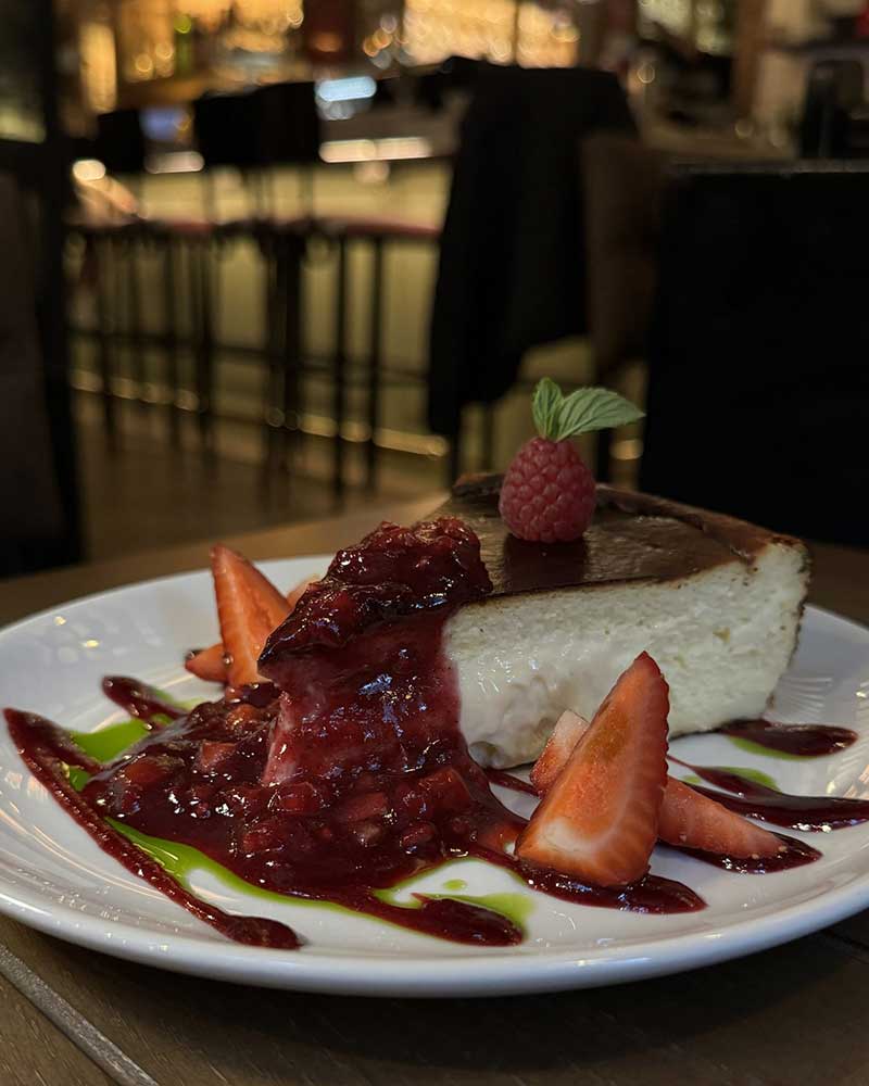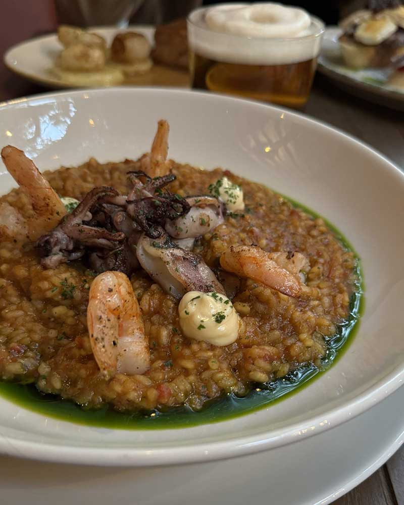 La primera vez que veas el menú de Bulla, te vas a sorprender porque es muy amplio. Desde las clásicas tapas, como las croquetas de jamón ibérico y las patatas bravas, hasta los platos más elaborados como el arroz meloso de mariscos o el solomillo de res en salsa de hongos. La carta de Bulla es una auténtica oda a la gastronomía española. La cocina está liderada por el chef Pedro Martín, cuya mano experta se percibe en cada creación. La atención al detalle, desde la frescura de los ingredientes hasta la técnica impecable en la preparación de cada plato, es evidente.