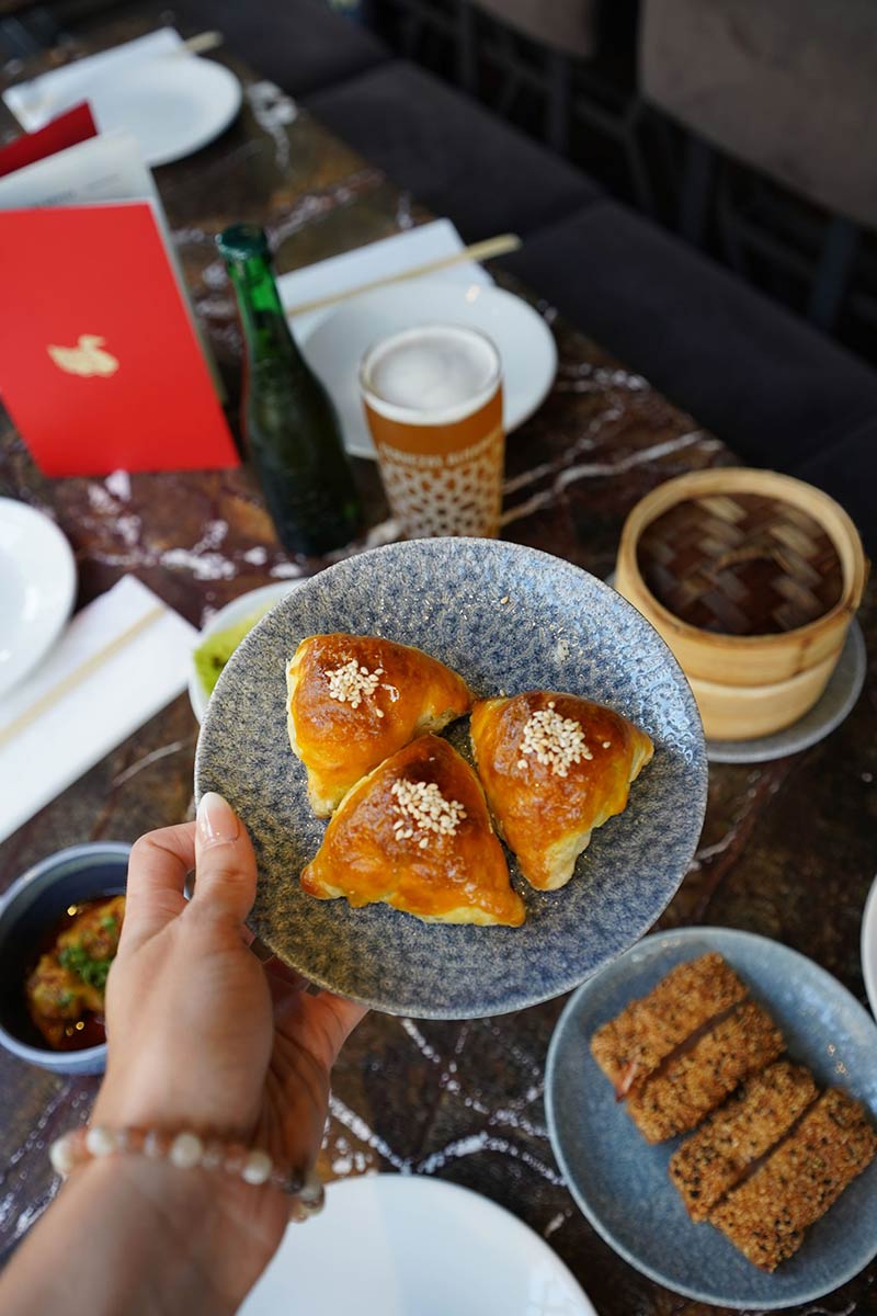 Honestamente, terminé lleno, pero tres platos destacaron: el hojaldre de venado, el pan de gambas con sésamo y el pato asado cantonés. El hojaldre de venado era algo único, con una masa que se deshacía en la boca y un relleno profundo y rico. El pan de gambas era fresco, preparado frente a mí en la cocina, con gambas jugosas y un pan crujiente con semillas de sésamo en la parte superior. Y el pato asado, simplemente perfecto. Piel crujiente, carne tierna y ese sabor clásico que todos adoramos.